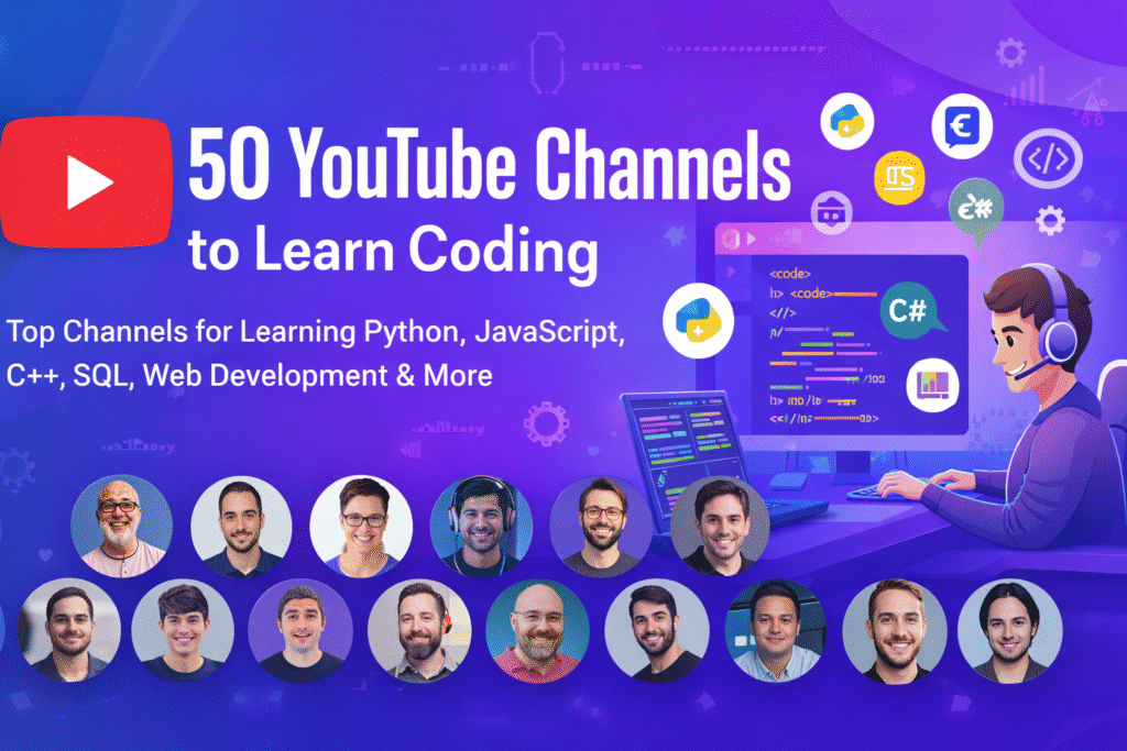 In this article, we will explore 50 of the best YouTube channels to learn coding for free, organized by programming language and technology so you can easily find the right resources.